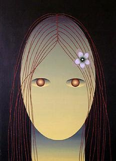 De repente, ela se encolhe no sofá, seus cabelos caem para fora do sofá, como cortinhas abertas e lhe diz cheia de manhas: